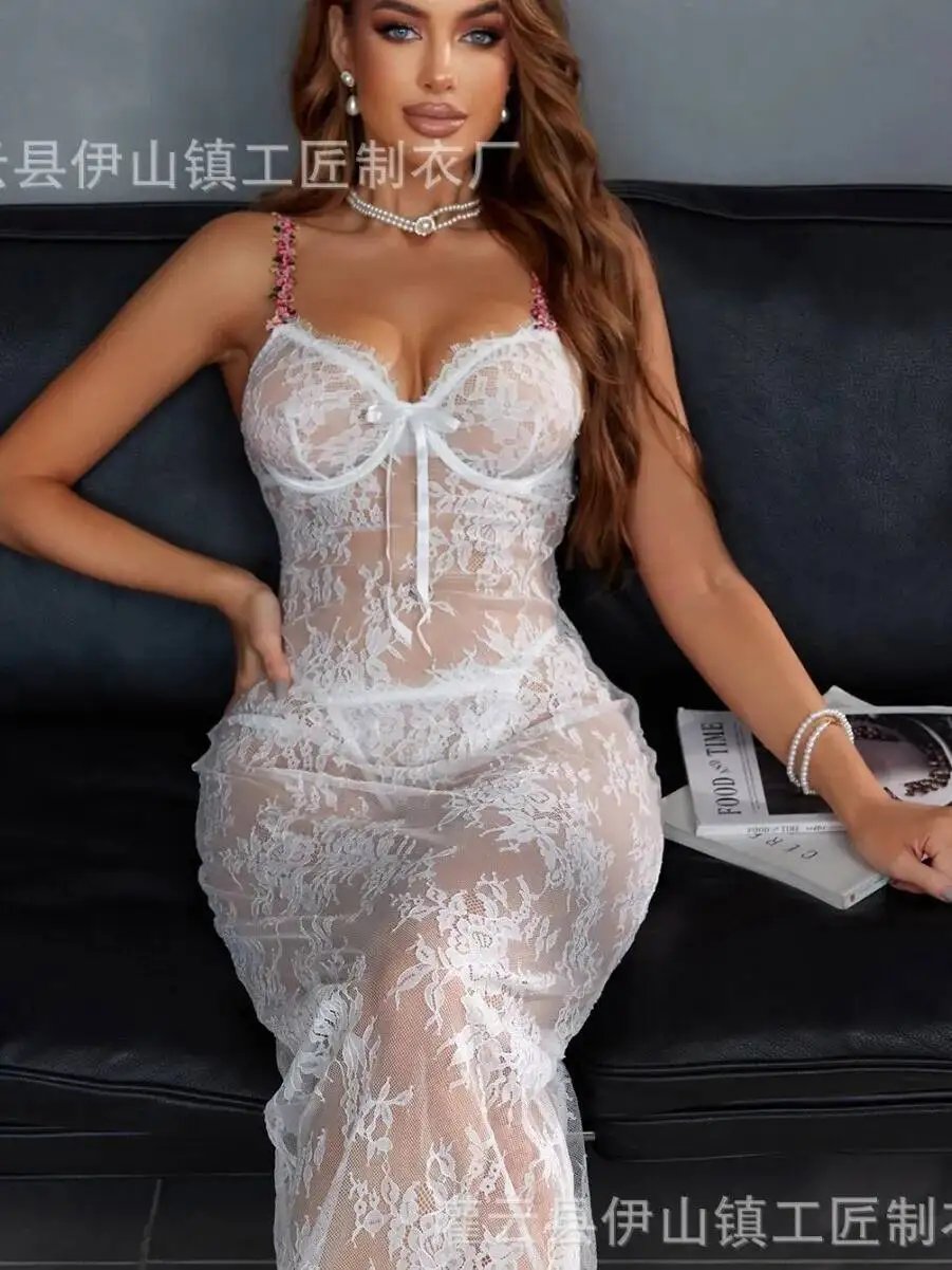 اكتشفي جمال الأناقة الراقية مع هذا الفستان الدانتيل الساحر والذي يجمع بين الفخامة والأنوثة في تصميم واحد. يتميز هذا الفستان الرائع بتفاصيله الدقيقة المصنوعة من قماش الدانتيل الفاخر، حيث يمنحك إطلالة متألقة وجذابة في كل مناسبة. اللون الأبيض النقي يضفي لمسة من الرقي والجاذبية، مما يجعله الخيار الأمثل للسهرات والمناسبات الخاصة.