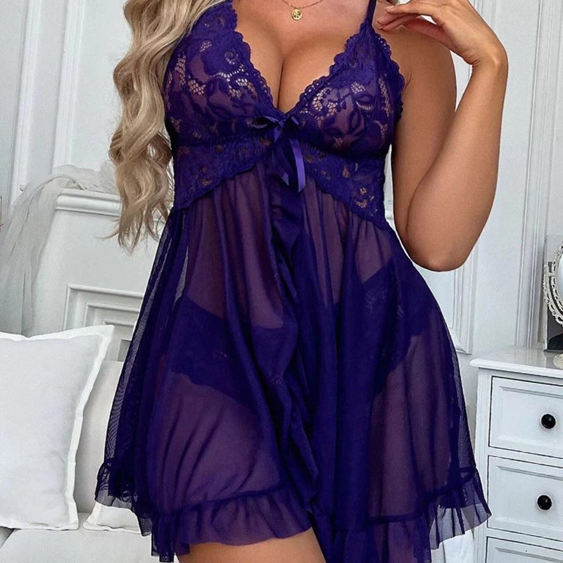 تم تصنيع فستان النوم من قماش شفاف بجودة فاخرة، مما يضمن لك الإحساس بالنعومة والراحة. كما أن فتحة الساق المنقسمة مع تصميم الرقبة على شكل حرف V يمنحك مظهرًا جذابًا وأنثويًا. القطعة الثانية تتمثل في لباس داخلي بتصميم برازيلي بسيط يجعل ارتداء هذه المجموعة مريحًا ومفعمًا بالأناقة.